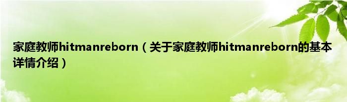 本文关于家庭教师hitmanreborn的基本详情介绍就讲解完毕,希望对大家有所帮助。
