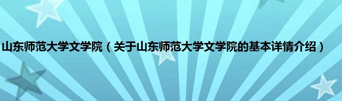 本文关于山东师范大学文学院的基本详情介绍就讲解完毕,希望对大家有所帮助。