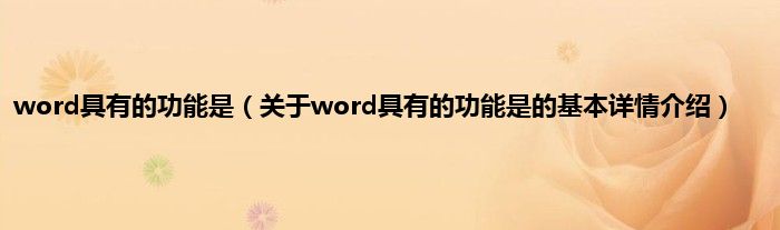 本文关于word具有的功能是的基本详情介绍就讲解完毕,希望对大家有所帮助。