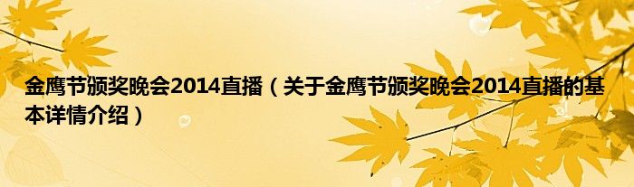 本文关于金鹰节颁奖晚会2014直播的基本详情介绍就讲解完毕,希望对大家有所帮助。