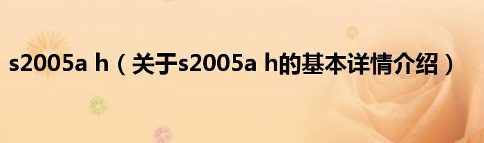 本文关于s2005a h的基本详情介绍就讲解完毕,希望对大家有所帮助。