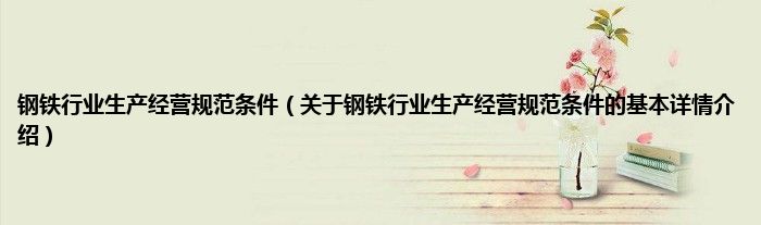 本文关于钢铁行业生产经营规范条件的基本详情介绍就讲解完毕,希望对大家有所帮助。