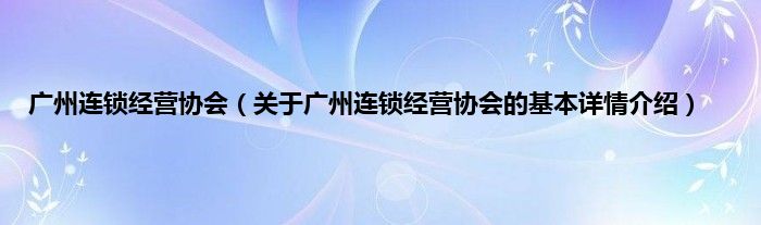 本文关于广州连锁经营协会的基本详情介绍就讲解完毕,希望对大家有所帮助。