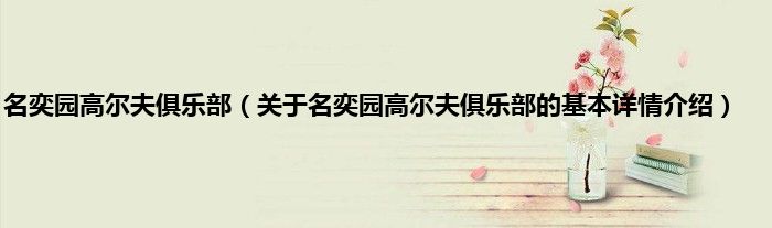 本文关于名奕园高尔夫俱乐部的基本详情介绍就讲解完毕,希望对大家有所帮助。