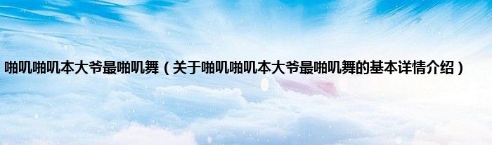 啪叽啪叽本大爷最啪叽舞(关于啪叽啪叽本大爷最啪叽舞的基本详情介绍)