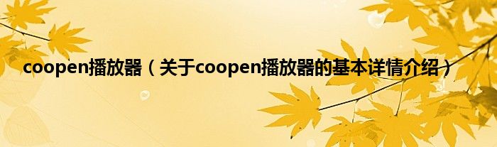 本文关于coopen播放器的基本详情介绍就讲解完毕,希望对大家有所帮助。