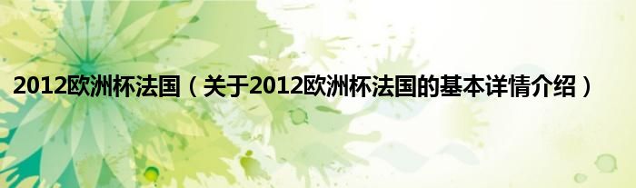 本文关于2012欧洲杯法国的基本详情介绍就讲解完毕,希望对大家有所帮助。