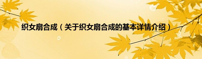 本文关于织女扇合成的基本详情介绍就讲解完毕,希望对大家有所帮助。
