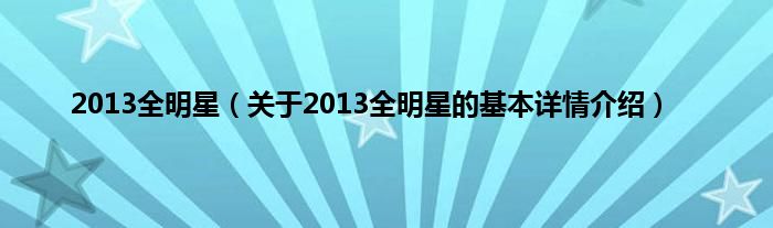 本文关于2013全明星的基本详情介绍就讲解完毕,希望对大家有所帮助。