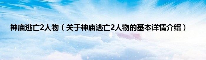 本文关于神庙逃亡2人物的基本详情介绍就讲解完毕,希望对大家有所帮助。