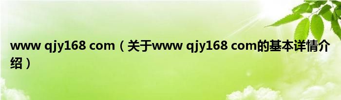 本文关于www qjy168 com的基本详情介绍就讲解完毕,希望对大家有所帮助。