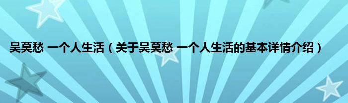 吴莫愁 一个人生活(关于吴莫愁 一个人生活的基本详情介绍)