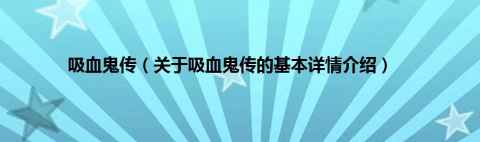 本文关于吸血鬼传的基本详情介绍就讲解完毕,希望对大家有所帮助。