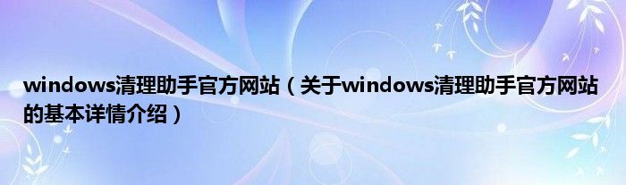 本文关于windows清理助手官方网站的基本详情介绍就讲解完毕,希望对大家有所帮助。