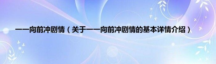 本文关于一一向前冲剧情的基本详情介绍就讲解完毕,希望对大家有所帮助。