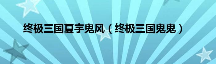 大家好,小问来为大家解答以上问题。终极三国夏宇鬼风,终极三国鬼鬼这个很多人还不知道,现在让我们一起来看看吧!