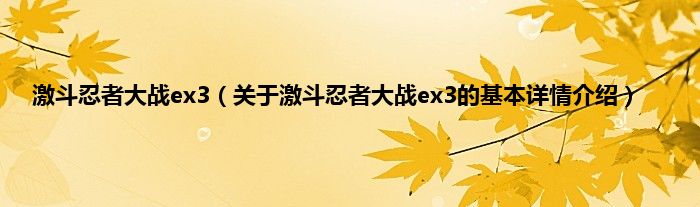 本文关于激斗忍者大战ex3的基本详情介绍就讲解完毕,希望对大家有所帮助。