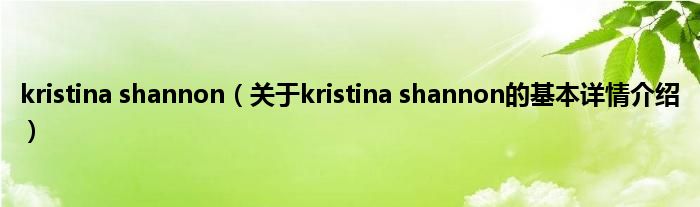 本文关于kristina shannon的基本详情介绍就讲解完毕,希望对大家有所帮助。