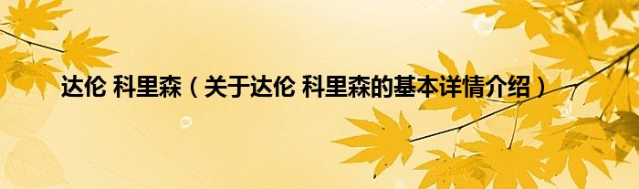 本文关于达伦 科里森的基本详情介绍就讲解完毕,希望对大家有所帮助。