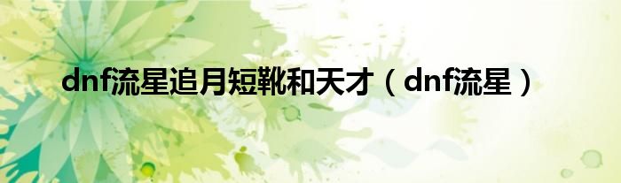 dnf流星追月短靴和天才(dnf流星)