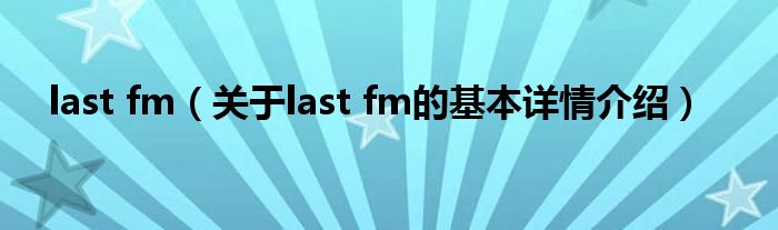 本文关于last fm的基本详情介绍就讲解完毕,希望对大家有所帮助。