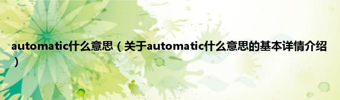 automatic什么意思(关于automatic什么意思的基本详情介绍)