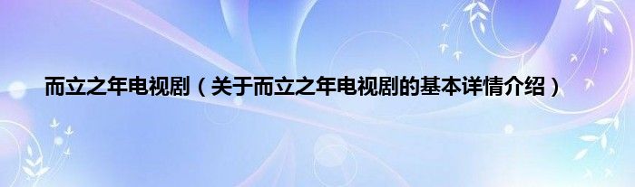 本文关于而立之年电视剧的基本详情介绍就讲解完毕,希望对大家有所帮助。