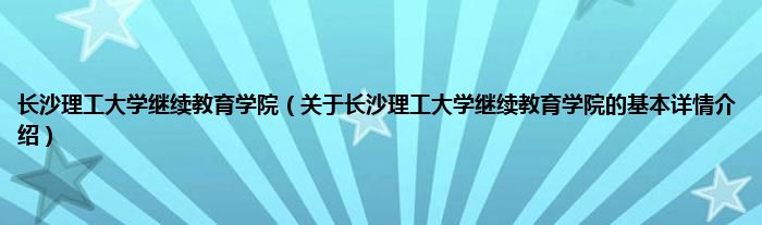 本文关于长沙理工大学继续教育学院的基本详情介绍就讲解完毕,希望对大家有所帮助。