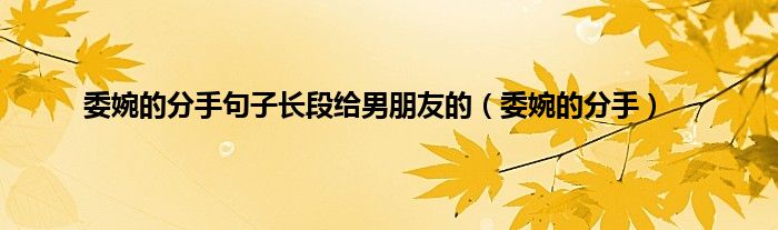 大家好,小问来为大家解答以上问题。委婉的分手句子长段给男朋友的,委婉的分手这个很多人还不知道,现在让我们一起来看看吧!