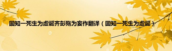 大家好,小问来为大家解答以上问题。固知一死生为虚诞齐彭殇为妄作翻译,固知一死生为虚诞这个很多人还不知道,现在让我们一起来看看吧!