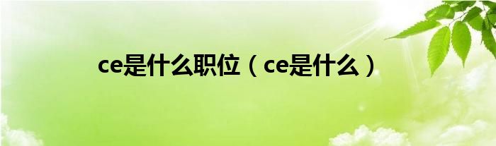 以上就是【ce是什么职位,ce是什么】相关内容。