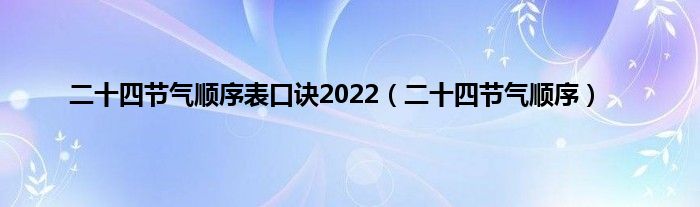 以上就是【二十四节气顺序表口诀2022,二十四节气顺序】相关内容。
