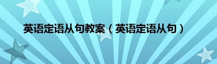 大家好,小问来为大家解答以上问题。英语定语从句教案,英语定语从句这个很多人还不知道,现在让我们一起来看看吧!
