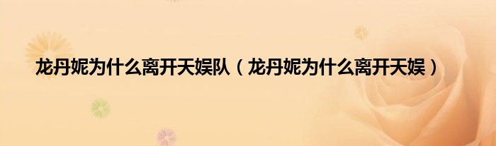 以上就是【龙丹妮为什么离开天娱队,龙丹妮为什么离开天娱】相关内容。