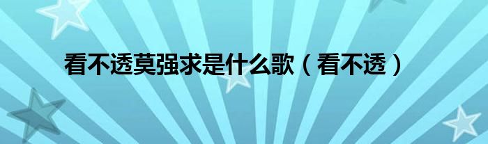 大家好,小问来为大家解答以上问题。看不透莫强求是什么歌,看不透这个很多人还不知道,现在让我们一起来看看吧!