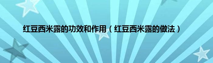 以上就是【红豆西米露的功效和作用,红豆西米露的做法】相关内容。