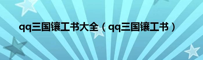 大家好,小问来为大家解答以上问题。qq三国镶工书大全,qq三国镶工书这个很多人还不知道,现在让我们一起来看看吧!