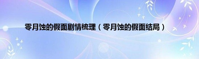 大家好,小问来为大家解答以上问题。零月蚀的假面剧情梳理,零月蚀的假面结局这个很多人还不知道,现在让我们一起来看看吧!
