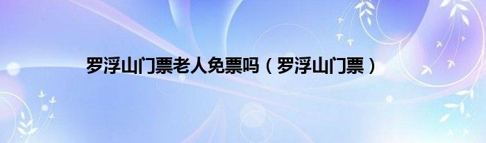 以上就是【罗浮山门票老人免票吗,罗浮山门票】相关内容。