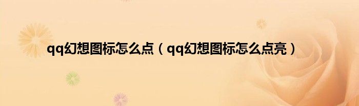 以上就是【qq幻想图标怎么点,qq幻想图标怎么点亮】相关内容。