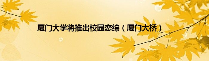 大家好,小问来为大家解答以上问题。厦门大学将推出校园恋综,厦门大桥这个很多人还不知道,现在让我们一起来看看吧!