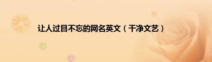 大家好,综合小编来为大家讲解下。让人过目不忘的网名英文,干净文艺这个很多人还不知道,现在让我们一起来看看吧!