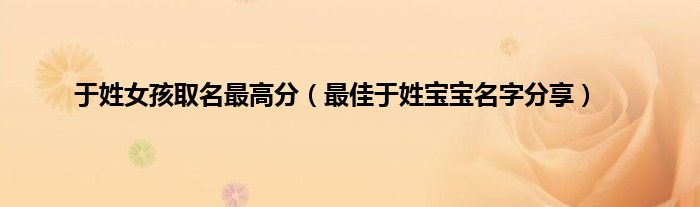 大家好,综合小编来为大家讲解下。于姓女孩取名最高分,最佳于姓宝宝名字分享这个很多人还不知道,现在让我们一起来看看吧!