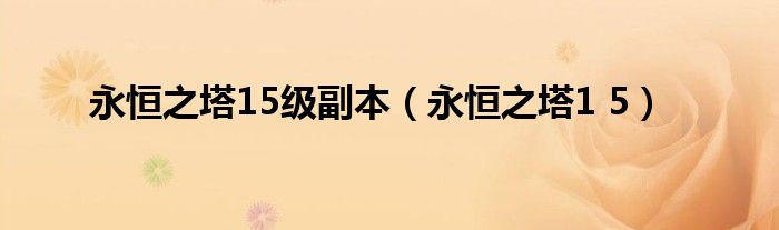 永恒之塔15级副本(永恒之塔1 5)