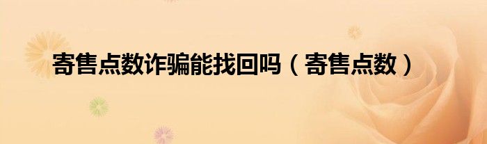 以上就是【寄售点数诈骗能找回吗,寄售点数】相关内容。