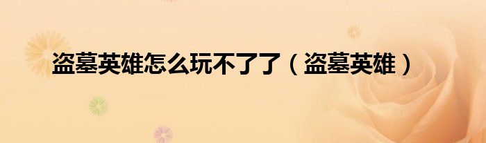 盗墓英雄怎么玩不了了(盗墓英雄)
