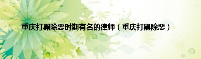 以上就是【重庆打黑除恶时期有名的律师,重庆打黑除恶】相关内容。