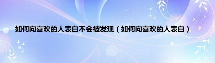 以上就是【如何向喜欢的人表白不会被发现,如何向喜欢的人表白】相关内容。