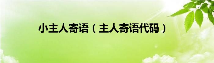 大家好,小问来为大家解答以上问题。小主人寄语,主人寄语代码这个很多人还不知道,现在让我们一起来看看吧!