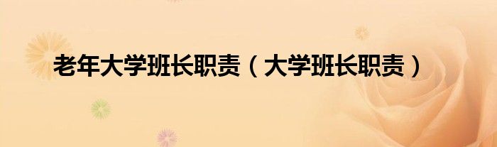大家好,小问来为大家解答以上问题。老年大学班长职责,大学班长职责这个很多人还不知道,现在让我们一起来看看吧!